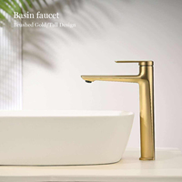Grifo de lavabo de oro cepillado, núcleo de válvula de cerámica, grifo alto de agua fría y caliente para el hogar, Hotel, baño, encimera, armarios de lavabo