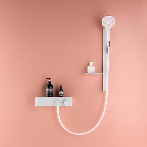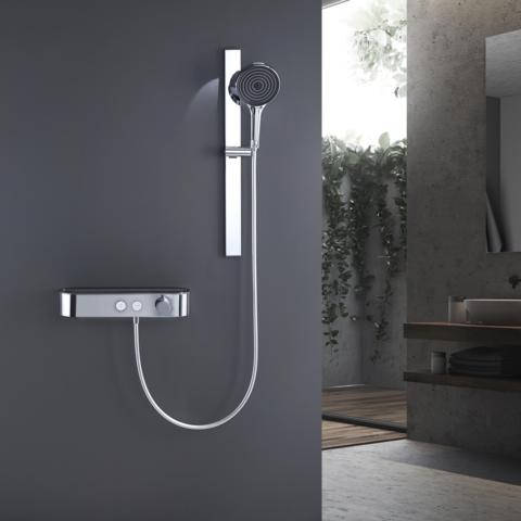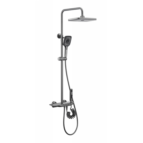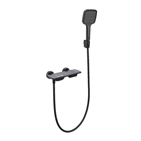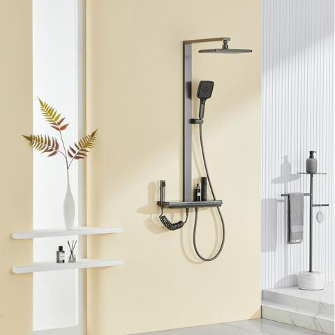Grifo de baño gris con pistola cromada minimalista moderno, juego de ducha de almacenamiento de latón de una sola manija con agua fría y caliente, diseño Simple