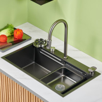 Grifo extraíble grande de gama alta de un solo lavabo, fregadero de cocina para lavavajillas grueso de acero inoxidable 304/verduras