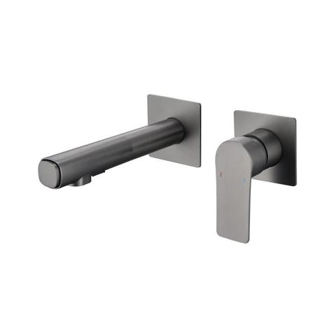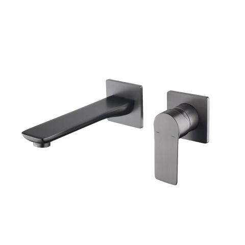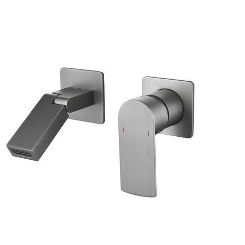 Grifo de fregadero de baño empotrado de cobre completo de diseño moderno, grifo de lavabo frío y caliente con núcleo de válvula de cerámica Gris Bronce galvanizado