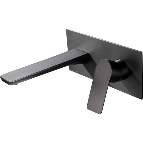 Grifo de baño de montaje en pared de un solo mango de diseño moderno, grifo de fregadero de cobre de alto flujo gris con núcleo de válvula de cerámica