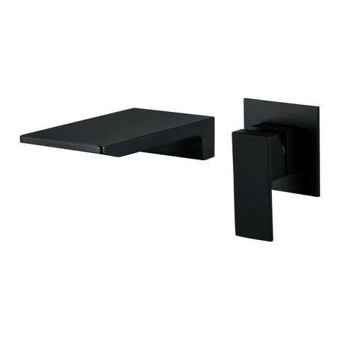 Grifo de baño de latón negro montado en la pared, grifo de lavabo de cascada de un solo mango clásico, válvula de cerámica, mezclador de agua fría y caliente oculto
