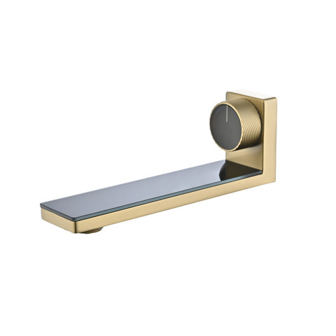 Grifo de lavabo de latón montado en la pared moderno acabado en oro cepillado con carrete de cerámica para lavabo de baño