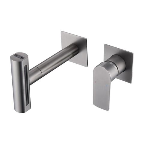 Grifo de tocador para baño montado en la pared oculto de gama alta de estilo moderno, grifos de lavabo de Material de cobre gris